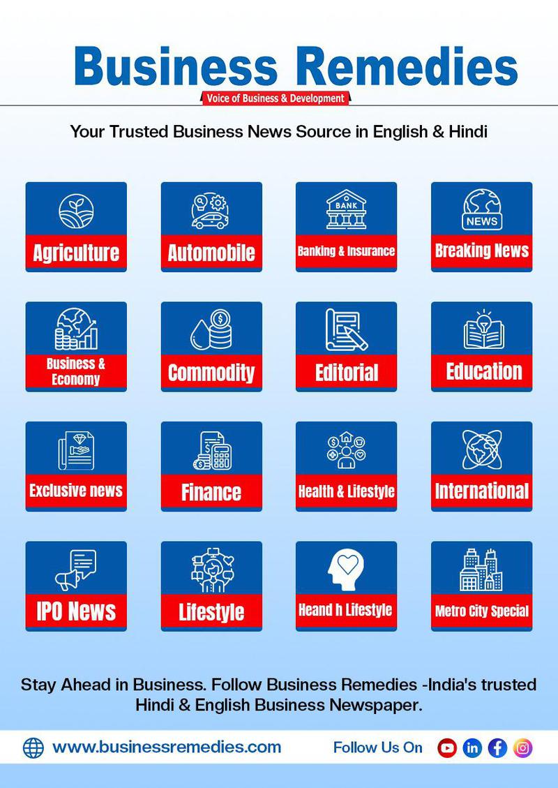 Business Remedies is a leading Hindi-language business daily newspaper from Jaipur, Rajasthan, delivering accurate and timely updates on the stock market, IPO allotment status, IPO subscription status, SME IPO, main board IPO, upcoming IPO, and IPO market latest news. Readers trust us for today’s stock market news, share market updates, stock market analysis, stock market predictions, and live updates on Nifty Sensex today.Our coverage includes complete updates on today gold rate, gold price in India, MCX gold rate today, silver rate, today silver rate, silver price in India, and MCX silver rate today, making us a reliable source for commodity market live updates.As Rajasthan’s top financial publication and one of the best business newspapers in India, Business Remedies provides the latest news about the stock market, share market today updates, financial market news today, corporate finance news, and Indian economy news today. We cover both national and local business news, with a strong focus on Jaipur business news, Rajasthan business news, Delhi business news updates, and the latest financial news in Rajasthan.With detailed reports, expert opinions, and simplified articles, our Hindi financial newspaper makes complex financial topics easy to understand. Whether you are searching for share market latest news in Hindi, stock market today live updates, IPO updates, financial express newspaper insights, or Rajasthan’s latest financial news, Business Remedies is your trusted source.Stay ahead with the latest Indian economy news, business news papers in India, and Hindi financial papers—only at Business Remedies, your go-to platform for share market and business news in Hindi.